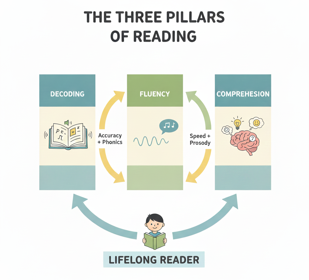 - Fluency (Reading Like Talking): This is when decoding becomes automatic. The child reads effortlessly and with expression. Fluent readers don’t waste energy sounding out words, so they can focus entirely on meaning. Weak fluency automatically impairs comprehension.